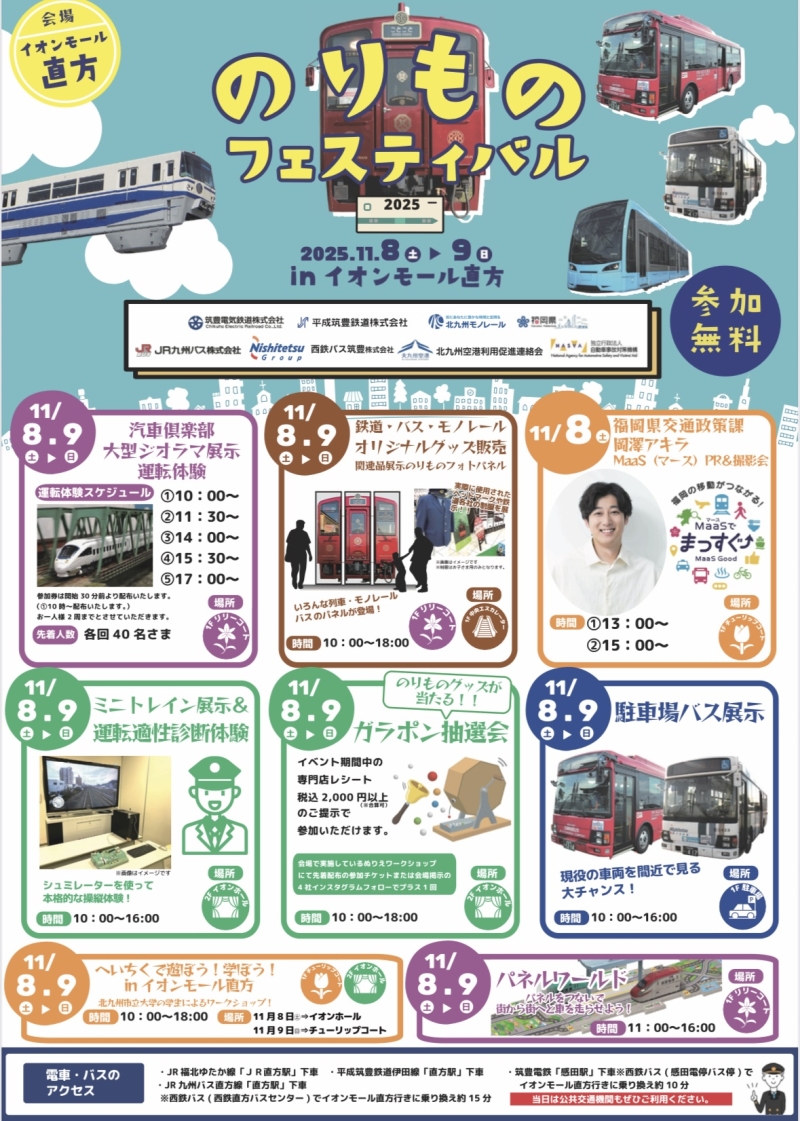 イオンモール直方で開催される「のりものフェスティバル」にゲスト出演します。
